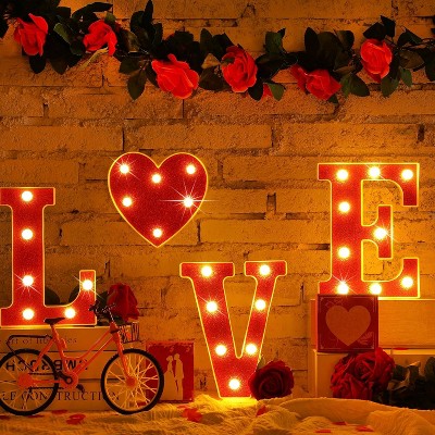 4 Pcs Love Light up Letters Valentine Love Light up Sign Alphabet LED Romantic Heart