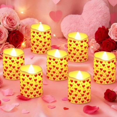 24 Pack Valentine's Day Flameless Pillar Candles LED Valentine Heart Candles Romantic Red Heart