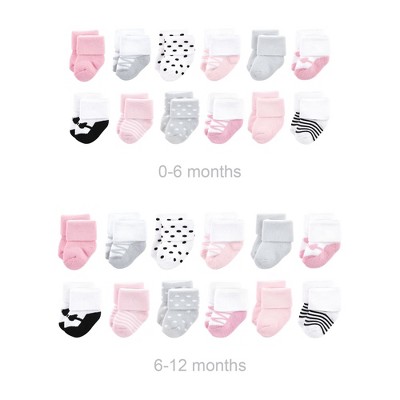 Luvable Friends Infant Girl Grow with Me Cotton Terry Socks, Pink Black, 0-6 and 6-12 Months