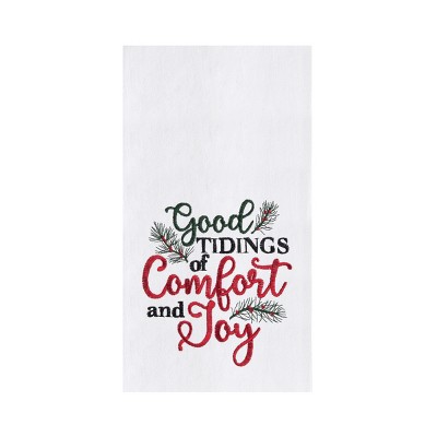 C&F Home "Good Tidings of Comfort & Joy" 100% Cotton Embroidered Flour Sack Christmas Dishtowel