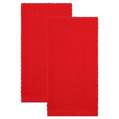 Tag 26L"x18W" Classic Blush Cotton Set of 2 Checked and Solid Terry Cloth Dishtowel Kitchen Towel Machine Washable