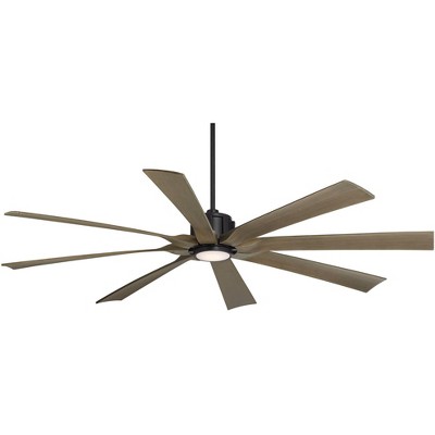 Possini Euro Design 60" Defender Modern Indoor Outdoor Ceiling Fan 8 Blade LED Light Remote Control Soft Brass Motor Koa Finish Blades Bedroom Patio