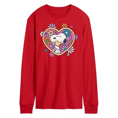 Men's - Peanuts - Hug Heart Flower Long Sleeve Graphic T-Shirt