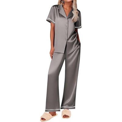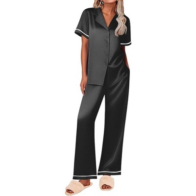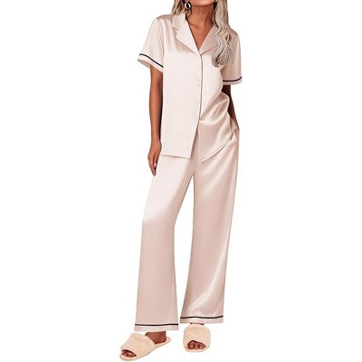 Ekouaer Women's Satin Silky Pajama Set 2 Piece Short Sleeve Shirt with Long Pants Pjs Sets Soft PJ Loungewear