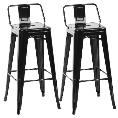 FDW Bar Stool Set of 2 Metal Bar Stools Industrial-Chic Counter Stools with Ergonomic Backrest Non-Slip Feet and Easy Assembly, Black
