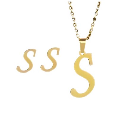 Initial Letter Pendant Necklace Earrings Set for Women Gold Plated Stainless Steel by Ginger Lyne