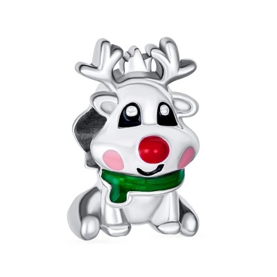 Bling Jewelry Christmas Cartoon Rudolph Red Nose Reindeer Charm Bead .925 Sterling Silver