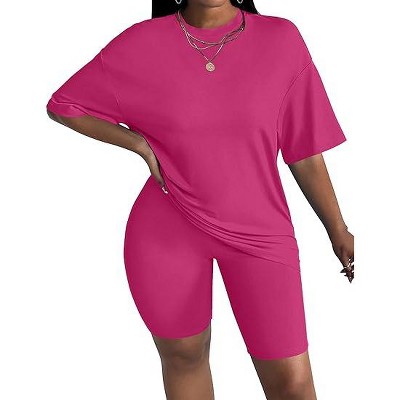 Ekouaer Women 2 Piece Lounge Sets Moisture Wicking Summer Outfits 2026 Oversized T-Shirt and Biker Short Matching Sets