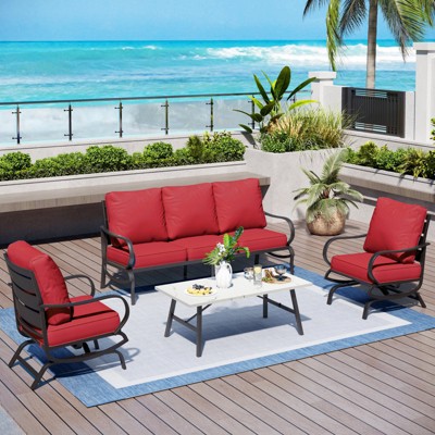 Captiva Designs 4 PCS Metal Patio Furniture Conversation Set with Rocking Armchairs for Garden Porch Backyard