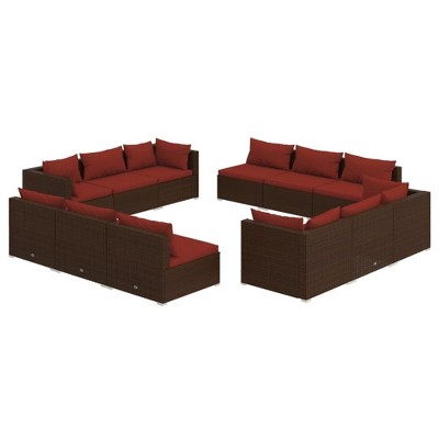 vidaXL Patio Sofa with Cushions - Garden Seating Outdoor Rattan Modular Sofa Set, Brown/Red, 113.4"x71.3"x34.4"