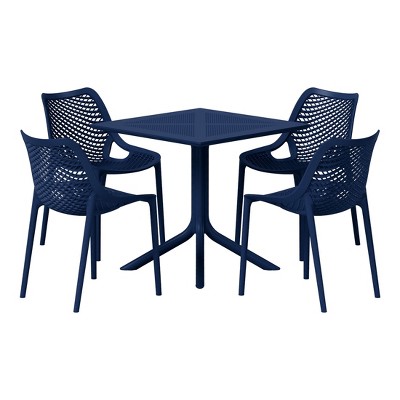 WestinTrends Playa 5-Piece Outdoor Resin Square Patio Dining Table Set with Modern Stackable Patio Dining Chairs