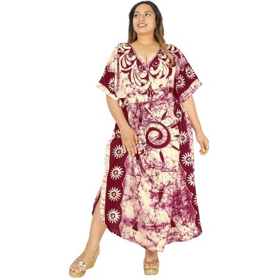 LA LEELA Womens Summer Batik Caftan House Dashiki Dress Kaftan Loungewear Nightshirts for Women Sleepwear Plus size 2X-3X Red, Stripe