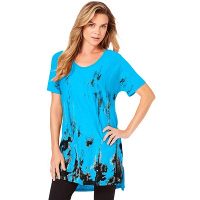 Alfred Dunner Womens Plus-Size Textured Shimmer Space Dye Top With Necklace , Plum Multi , Size 2X