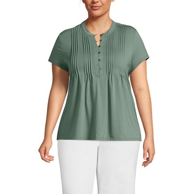 Lands' End Women's Short Sleeve Lightweight Jersey Button Pintuck Top