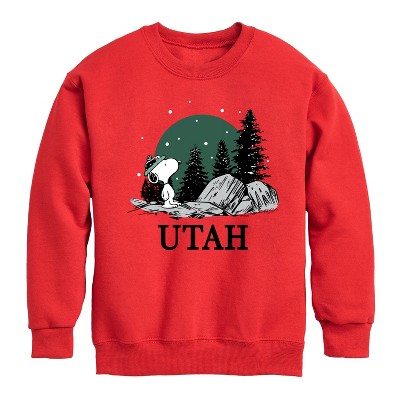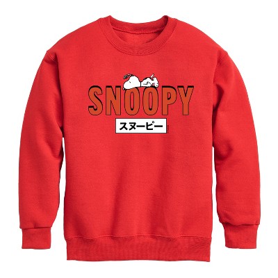 Boys' - Peanuts - Snoopy Red Graphic Long Sleeve Fleece Sweatshirt