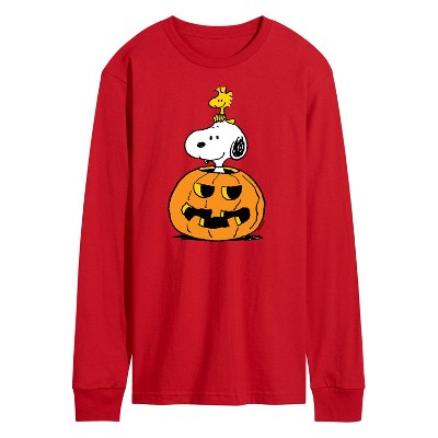 Men's - Peanuts - Snoopy Woodstock Pumpkin Long Sleeve Graphic T-Shirt
