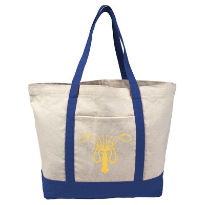 Mississippi Valley State University Primary Logo Canvas Tote Bag With External Pocket, Reusable Shoulder Bag for Shopping, School, Beach