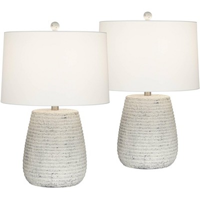 Possini Euro Design 23" High Small Modern Coastal Accent Table Lamps Set of 2 Beige Sandstone Finish Ceramic White Shade Living Room Bedroom Bedside
