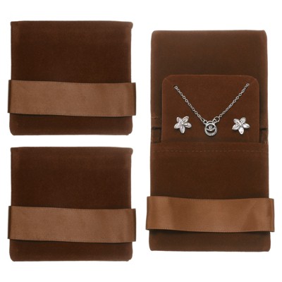 Unique Bargains Velvet Storage Ring Necklace Jewelry Pouches with Insert Pad 3.5" x 3.3" 3 Pcs
