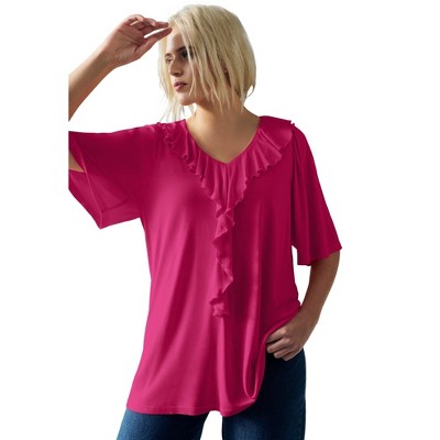 red scoop neck