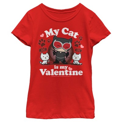 Girl's Batman Catwoman My Cat is My Valentine T-Shirt