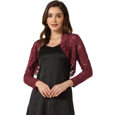 INSPIRE CHIC Women's Elegant Sheer Floral Lace Crop Cardigan Bolero Shrug
