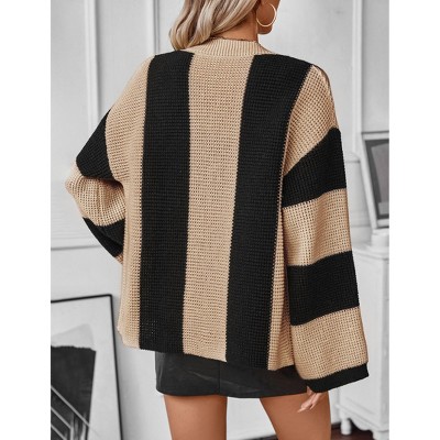 Coolmee Women's Striped Cardigan Long Sleeve Open Front Sweater Knit Oversized Casual Loose Sweater