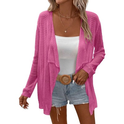 Womens Summer Lightweight Cardigan Long Sleeve Open Front Loose Beach Crochet Cover Up