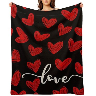 Valentine's Day Throw Blanket - Black Red Hand-Drawn Hearts Love, Ultra Soft Anti-Pilling for Couch & Gifting 60x80 inches