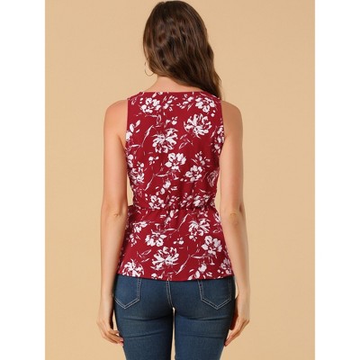 Allegra K Women's Sleeveless V Neck Tie Waist Asymmetric Hem Wrap Peplump Tops