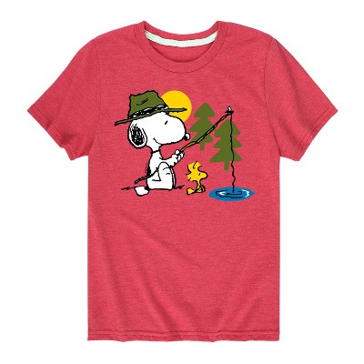 Boys' - Peanuts - Snoopy Woodstock Fishing Short Sleeve Graphic T-Shirt