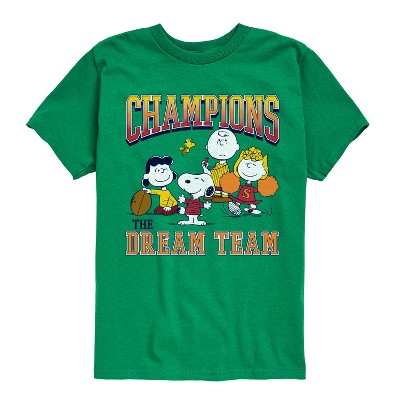 Boys' - Peanuts - Snoopy Charlie Lucy Sally Football Champions Short Sleeve Graphic T-Shirt
