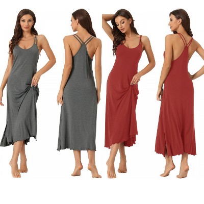 INSPIRE CHIC Women's 2 Pcs Pajama Dress Sleeveless Backless Full Slip Camisole U Neck Midi Nightgowns