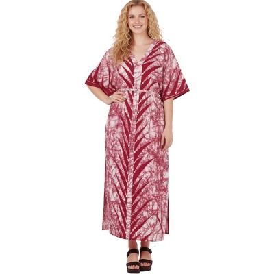 LEELA Womens Summer Holiday Beach Casual Dailywear Elegant Maxi Kaftan Dress Caftan Loungewear Dashiki House Dresses for Women 3X-4X Red, Tree