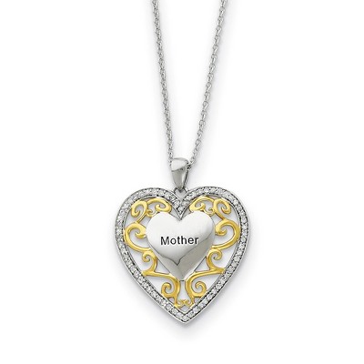 Black Bow Jewelry Rhodium & Gold Tone Plated Silver & CZ Mother Heart Necklace, 18 Inch