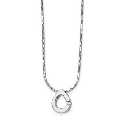 Black Bow Jewelry Diamond Accent Teardrop Necklace in Rhodium Plated Silver, 18-20 Inch