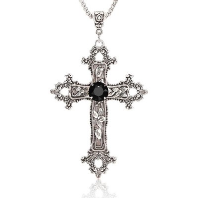 Summit Adventure Gothic Silver Cross Necklace | Y2K Large Glass Stone Pendant Halloween Chain