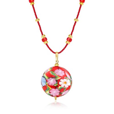 Ross-Simons Red Enamel Heart Circle Pendant Necklace in 10kt Yellow Gold