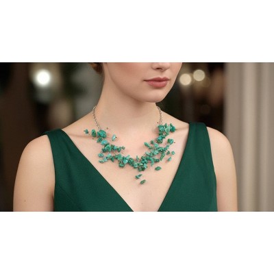 Michelle Marie's Designer Green Malachite Spray Holiday Formal Necklace