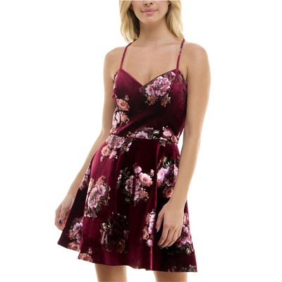 BCX Womens Velvet Floral Fit & Flare Dress