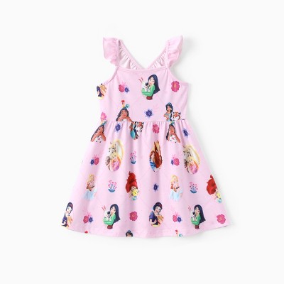 Disney Princess Rapunzel Ariel Moana Belle Toddler Girl Dress Ruffle Sleeve Crossback Strap Birthday Summer Sundress 2-6 Y