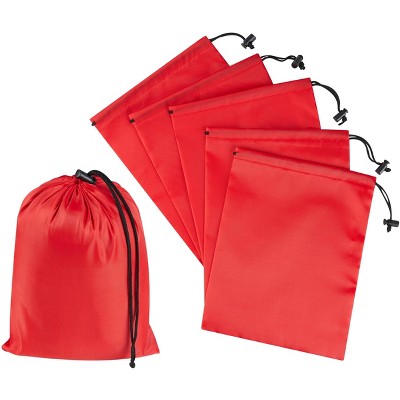 Narwey Drawstring Bag with Toggle - Nylon Cinch and Ditty Pouch Six-Pack (Red, 7 x 9 Inch, Set of 6)