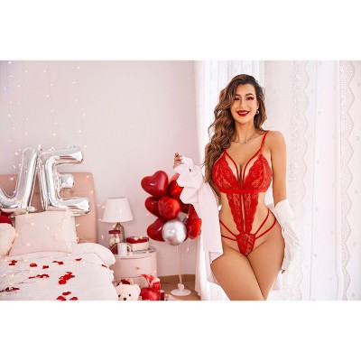Avidlove Lingerie for Women Lace Bodysuit Teddy One Piece Lingerie Lace-up Back Cut Out Lingerie True Red L