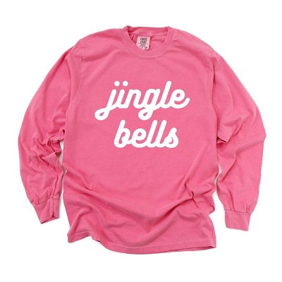 Simply Sage Market Women's Jingle Bells Bold Cursive Long Sleeve Garment Dyed Tee
