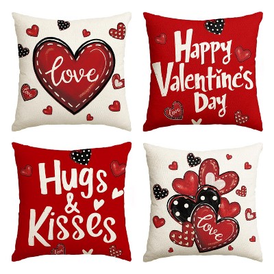 Waterproof Happy Valentine's Day Red and Black Heart Throw Pillow Covers, 18 x 18 Inch Hugs Kisses Love