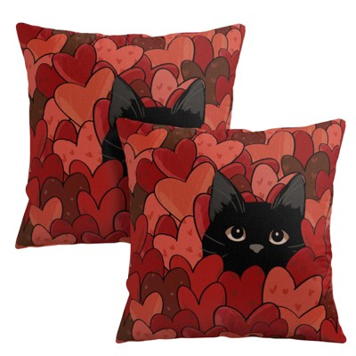 Valentines Velvet Throw Pillow Covers 18x18 Set of 2 Red Love Heart Black Cat