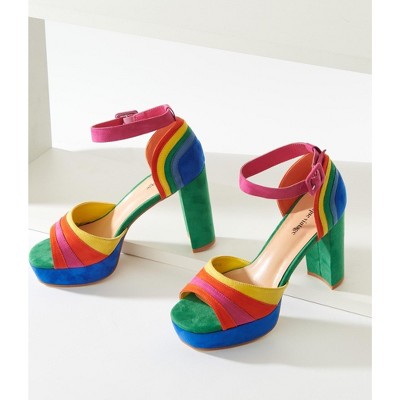 Unique Vintage Women's Rainbow Suede Peep Toe Pumps