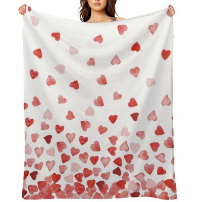Lomsoe White background with red heart print Flannel blanket, Ideal for Couples, Bed, Sofa. Valentine's Day Gift.Wedding Anniversary Gift.