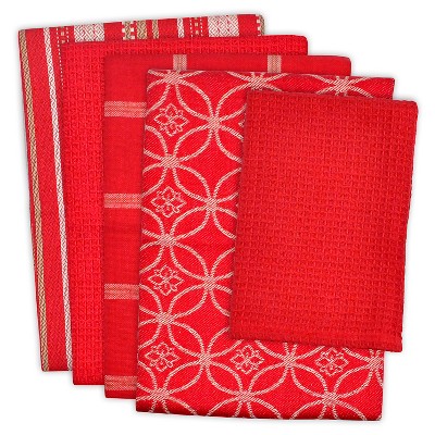 5pk Kitchen Towel & Dishcloth Set Red - Design Imports: Absorbent Cotton, Fast Drying, with Hanging Loop