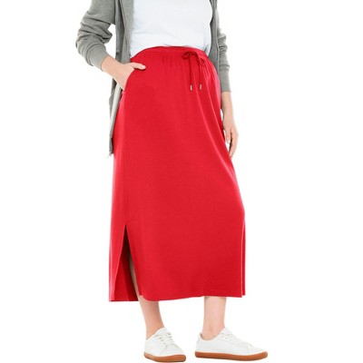 - red midi skirt